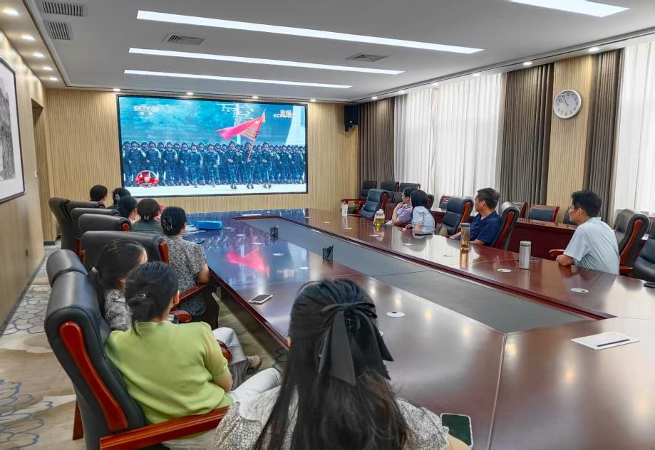 9月3日上午,纪念中国人民抗日战争暨世界反法西斯战争胜利80周年大会在北京天安门广场隆重举行,中共中央总书记、国家主席、中央军委主席习近平发表重要讲话并检阅受阅部队。皇冠集团网站组织全体员工在行政楼第六会议室集体观看大会实况,共同见证这一承载历史与未来的国家盛典。
