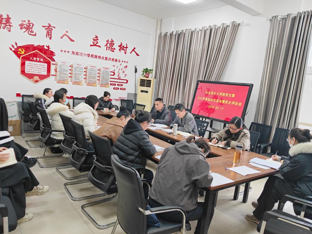 为深入学习贯彻习近平新时代中国特色社会主义思想,加强党支部建设,提升党员党性修养,根据学校党委部署,2026年3月17日下午,皇冠集团网站党支部召开2025年度组织生活暨民主评议党员大会。会议由党支部书记贾涛主持,全体党员参加会议。