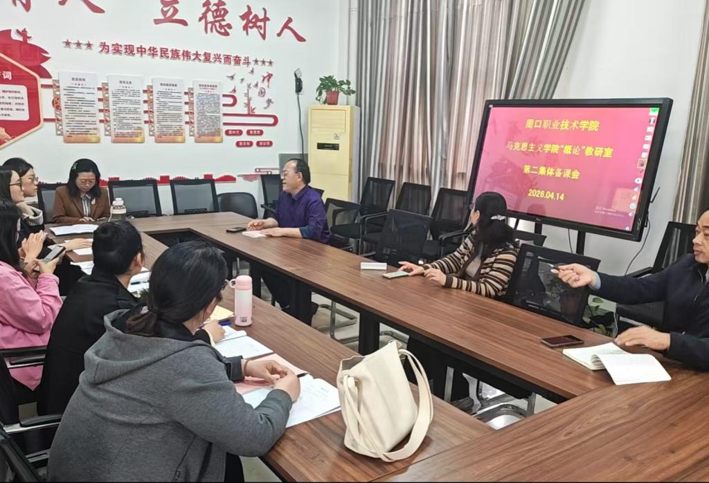 2026年4月14日,皇冠集团网站"概论"教研室在3353集体备课室进行本学期第二次集体备课,会议由曾博主任主持,全体思政课员工参加。