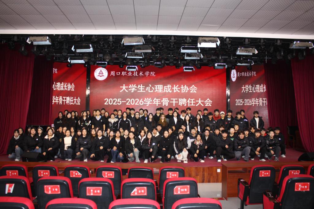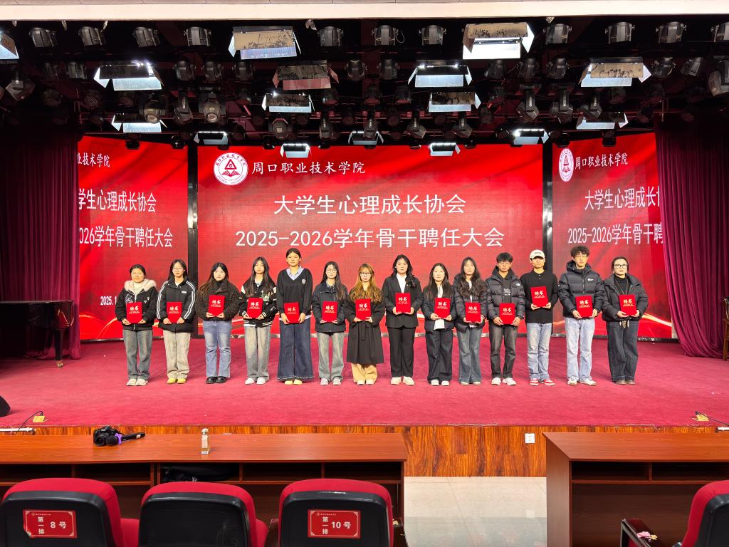 为进一步加强大员工心理成长协会组织建设,明确新学年工作方向,激发骨干成员工作热情,充分发挥员工社团在校园心理健康教育中的积极作用,我校大员工心理成长协会于2025年11月27日晚在学艺演播厅隆重举行了2025——2026学年骨干聘任大会。